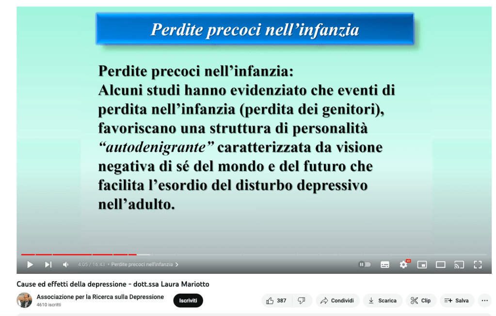 Non a caso quando poi arriva la consapevolezza della morte, molti bambini hanno dei traumi e possono sviluppare anche dei disturbi (ansia generalizzata, depressione derealizzazione, ecc.). Benvenuti nella diversità, che è alla base dell’evoluzione biologica. Inoltre si sa chiaramente che infelicità e molte forme di depressione e ansia sono associate a malattie, lutti, esperienze traumatiche, quindi esperienze di vita negative (tutto ciò che minaccia gravemente il benessere e la nostra identità personale, tra cui appunto malattia e morte). Negative life events. Per lavoro devo leggere molta letteratura scientifica che tratta anche malattie, ansia, depressione ecc, e non ho mai trovato che tra i fattori di ansia e depressione ci siano positive life events. Sempre il contrario. Questo è un fatto consistente e cruciale. Chiaramente l’invecchiamento biologico, che è la principale causa di malattia e morte, causa negative life events come se piovesse (100 mila morti al giorno, senza contare le menomazioni e invalidazioni subletali).